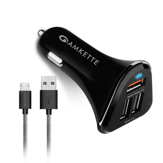 PowerPro 3 Port QC Car Charger (Micro USB Cable)