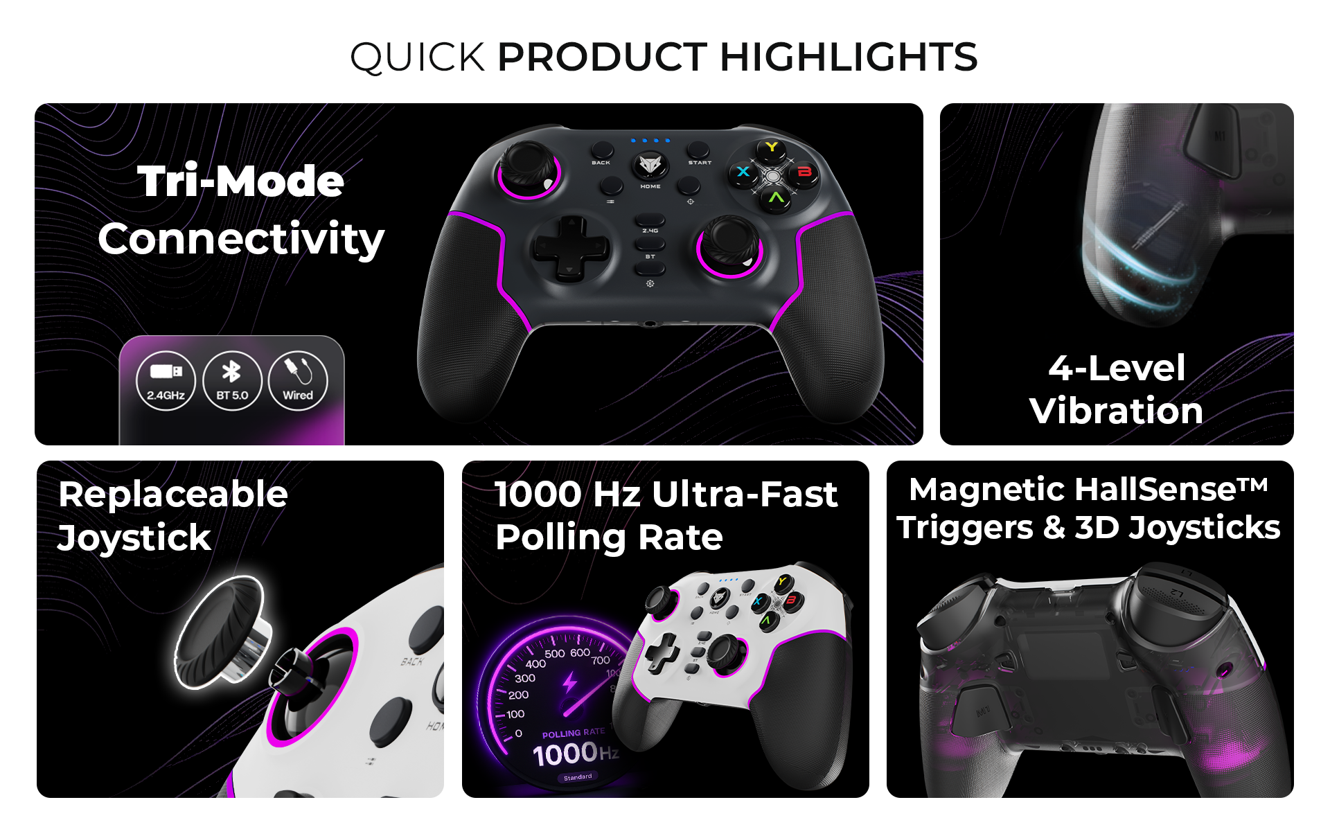 Unlock superior gaming with EvoFox Elite X2 Pro. Tri-Mode connectivity ensures seamless switching between Bluetooth, 2.4GHz wireless, and USB-C wired modes. Enjoy HallSense magnetic triggers, 1000Hz polling, RGB customization, and up to 16 hours of battery life across all major platforms.