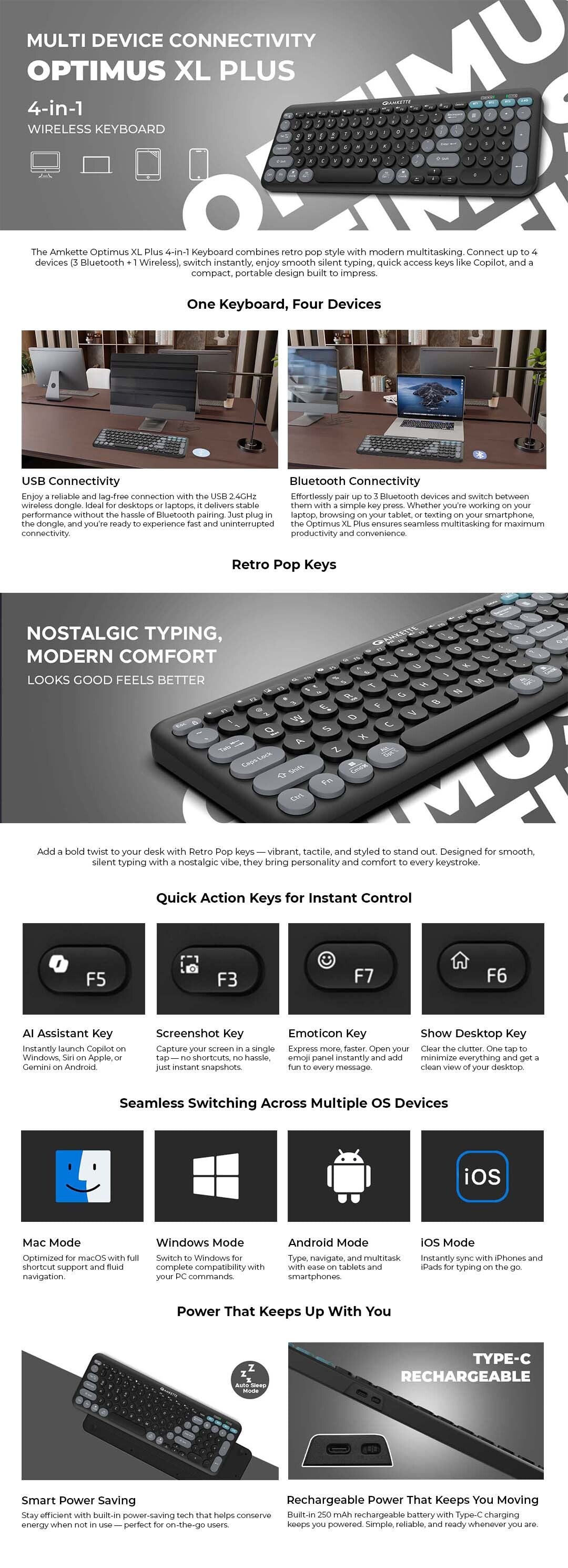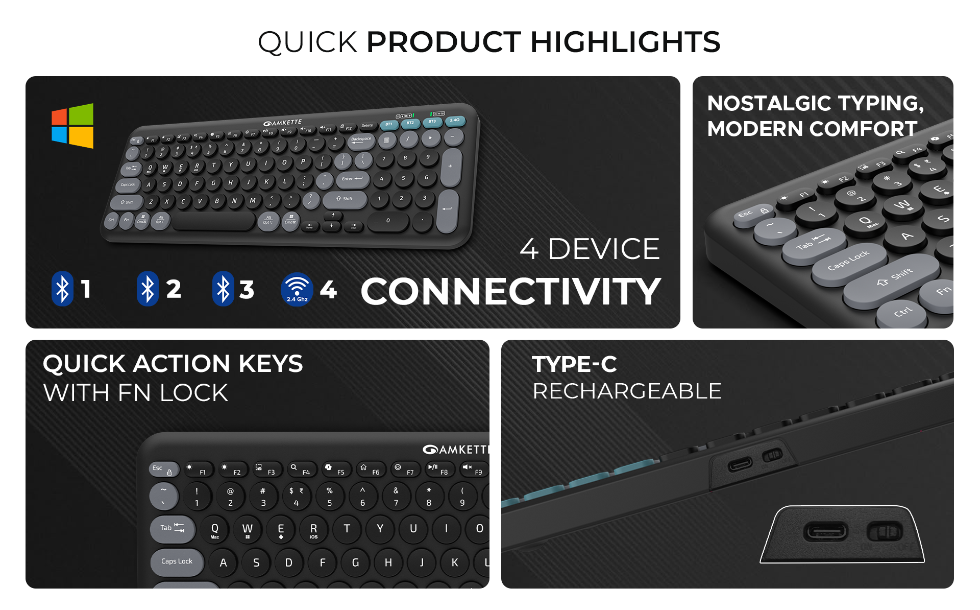 Use the dedicated on-the-fly switching keys to toggle between paired Bluetooth devices or the 2.4 GHz connection.