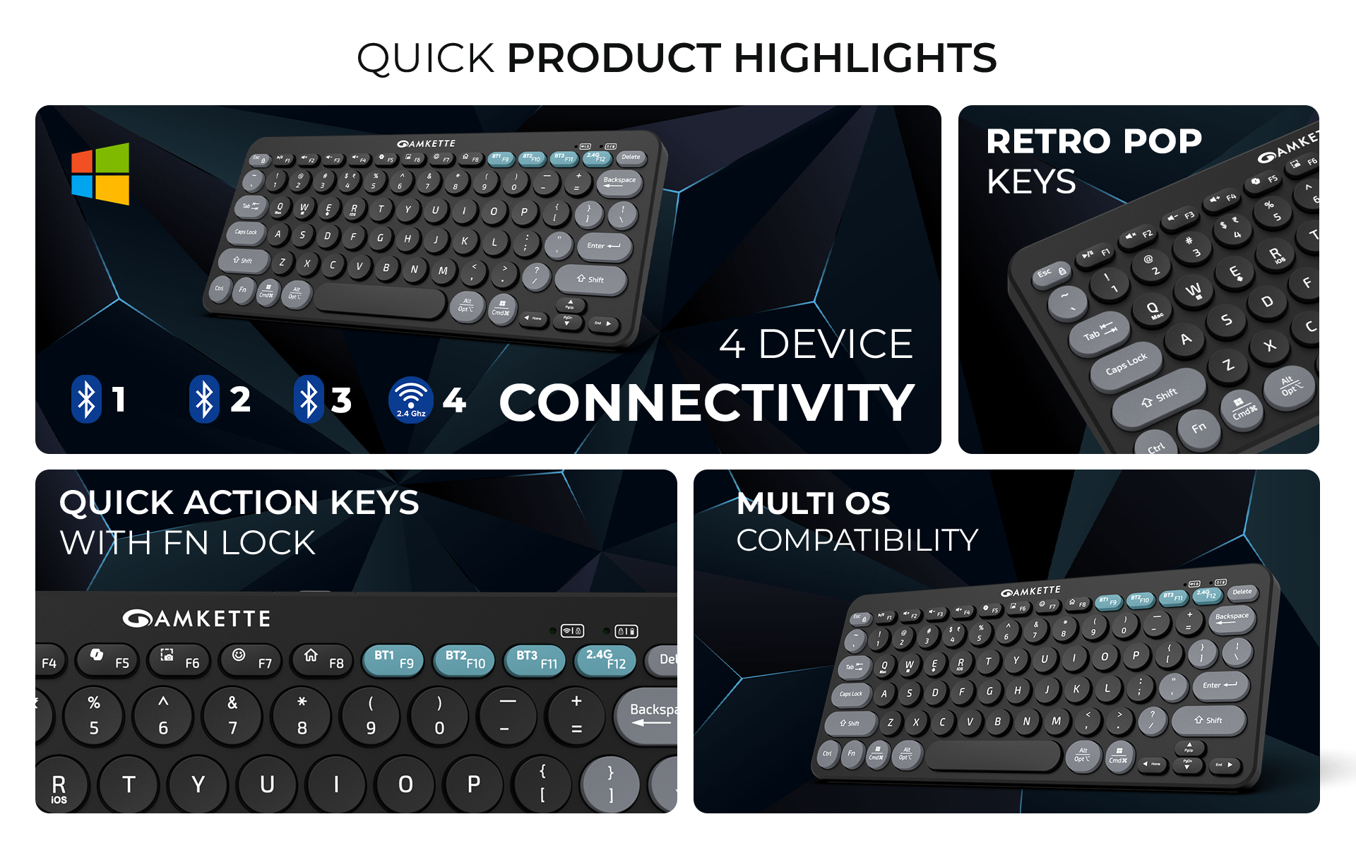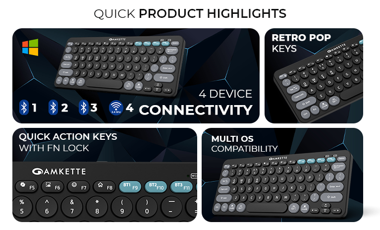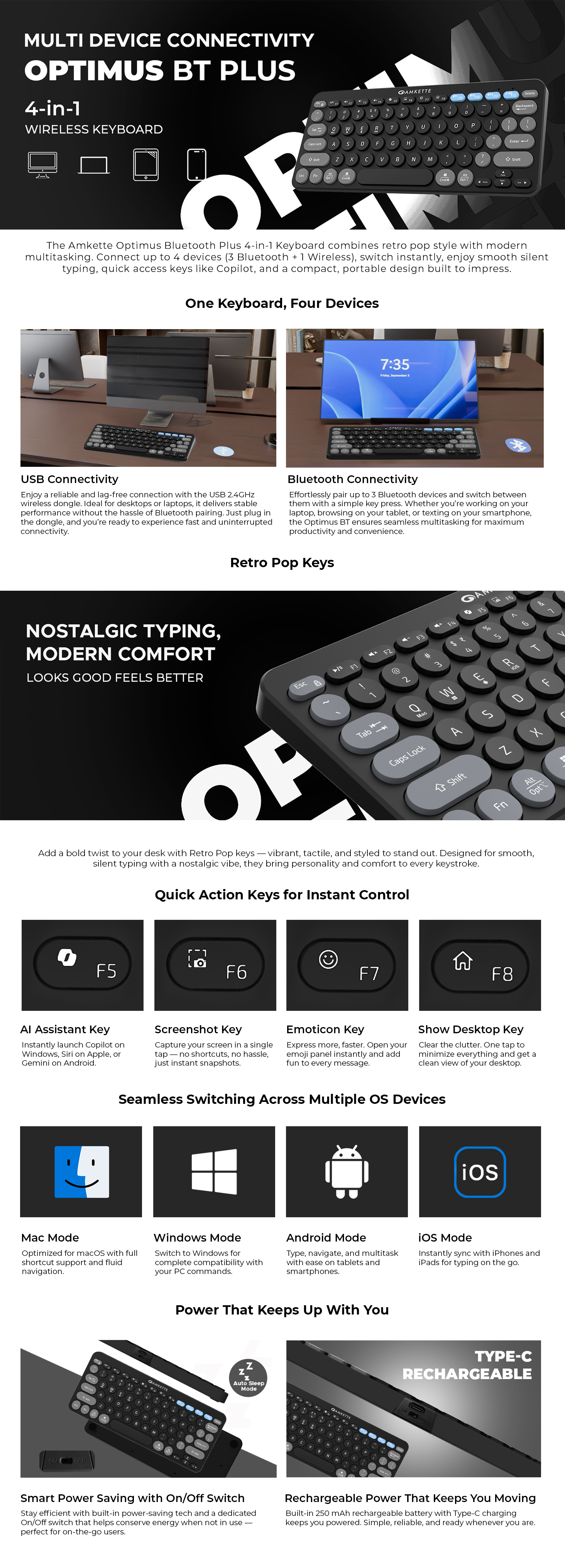 The Optimus Bluetooth 4 in 1 Keyboard is designed with usability in mind. Its compact design makes it highly portable, allowing you to carry it effortlessly wherever you go. The thoughtful layout of keys, combined with the ergonomic design, ensures a user-friendly experience for individuals of all preferences, making it an ideal choice for various computing needs.