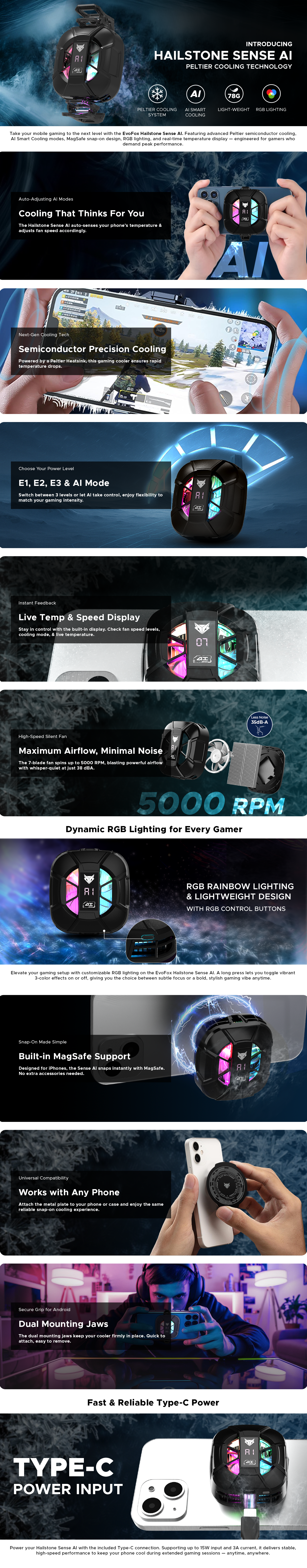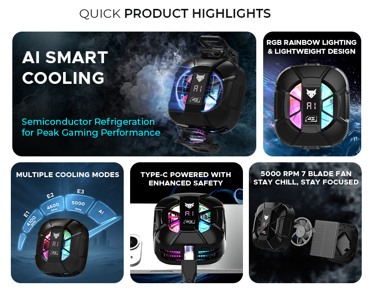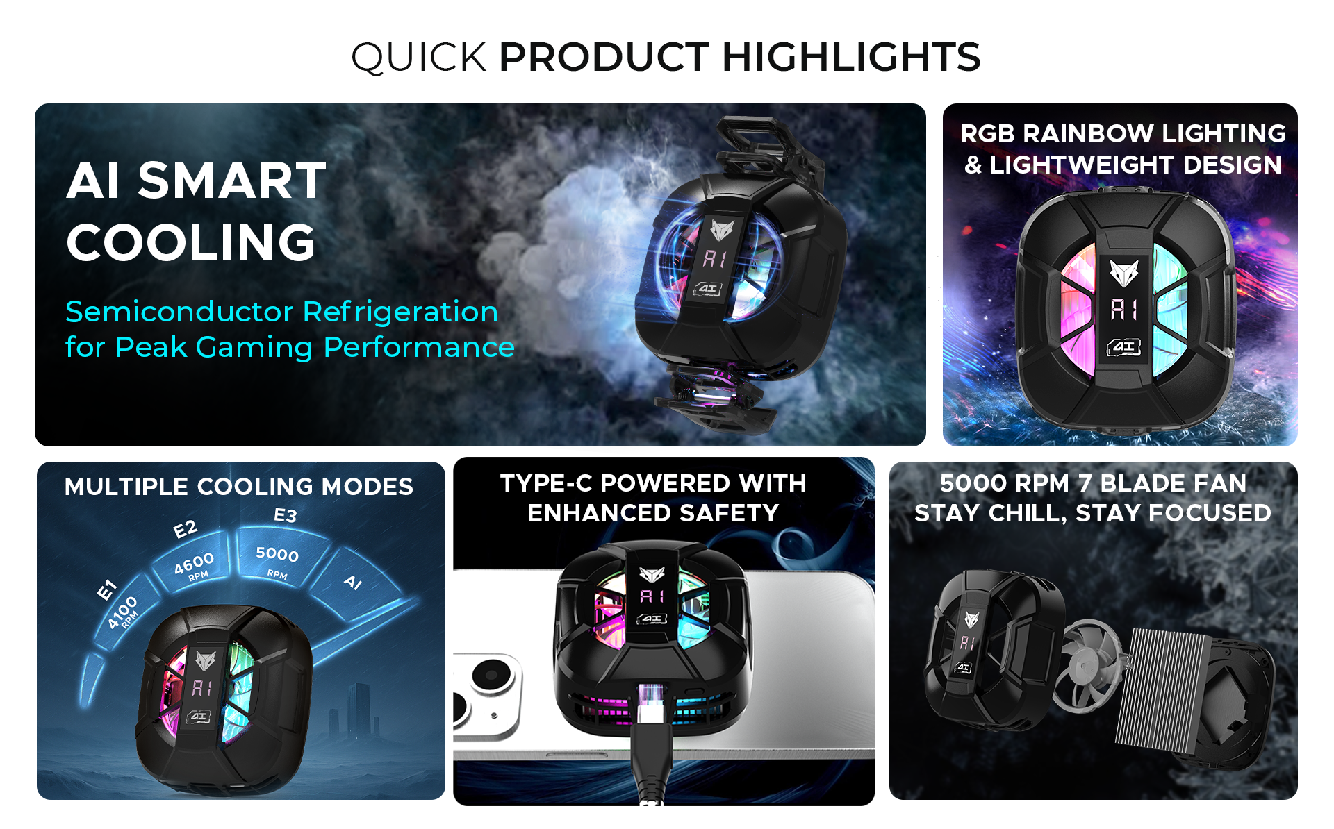 AI mode automatically adjusts the fan speed (E1, E2, E3) based on your phone’s temperature for the best cooling efficiency.