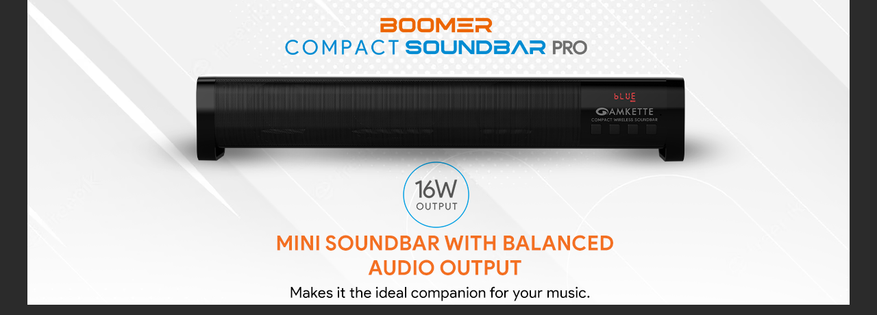 A. The Boomer Compact Soundbar offers a powerful sound output of 16W, delivering impressive audio and bass, for an immersive experience.