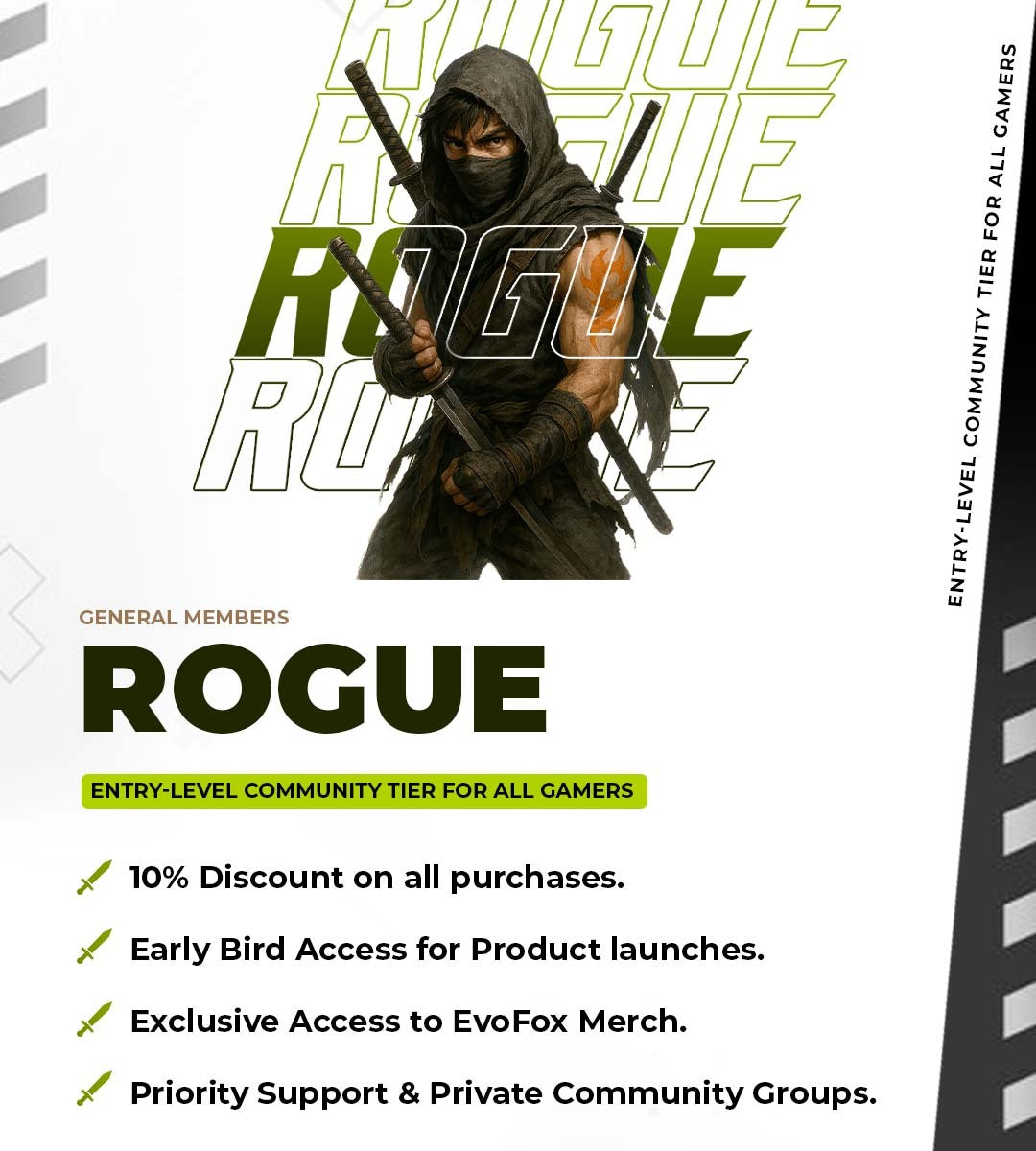 Join the EvoFox Tribe and unlock a world beyond just gaming. Get exclusive early access to product drops, earn rewards for doing what you love, and rise through the ranks â from Tribe Member to Ninja to Samurai. Whether you're a casual gamer or a hardcore warrior, there's a place (and perks) waiting for you. Sign up, gear up, and start your journey today.