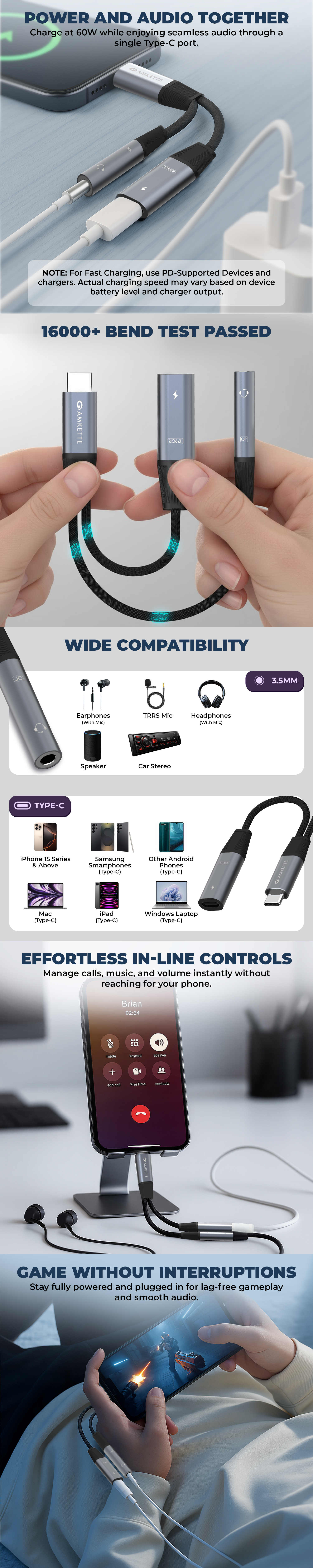 The adapter supports up to 60W Power Delivery (PD) for fast and efficient charging.