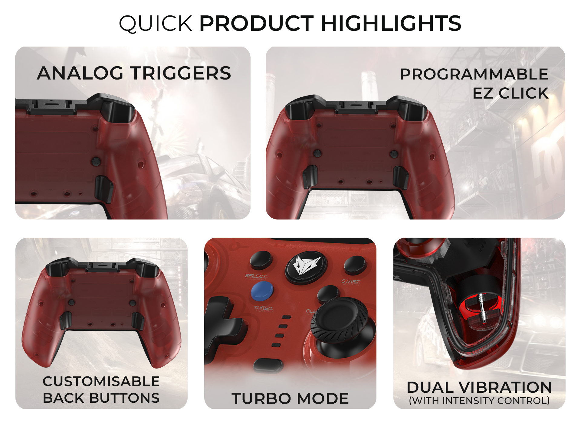 A. The EvoFox Elite X Wireless Gamepad for PC is equipped with pressure-sensitive triggers, which means that the triggers respond to the amount of pressure applied. This feature allows for precise control in games that support it, enabling you to vary the intensity of actions like accelerating in racing games or aiming in shooters by adjusting how hard you press the triggers. Check out Manuals for more info.