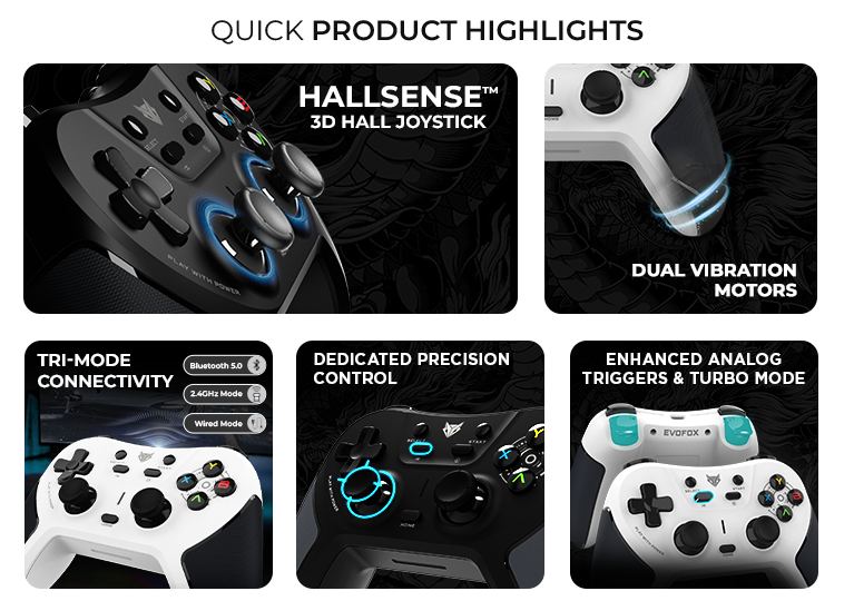 Equipped with HallSense™ Magnetic Joysticks & Analog Triggers, 3 Connectivity Modes, Programmable Macro Buttons, and Dual Vibration Motors, this controller is built for pro-level gaming.