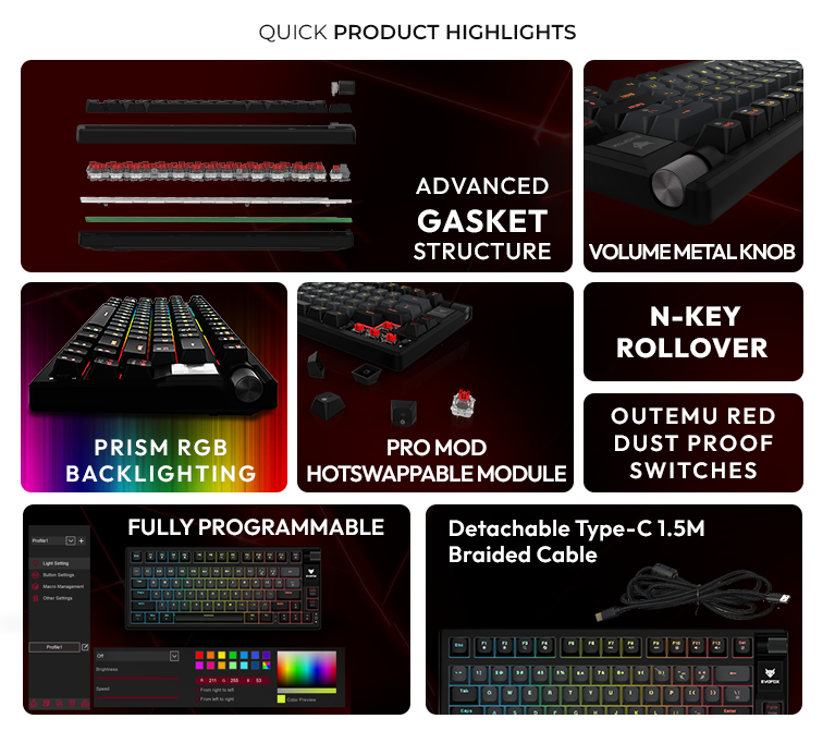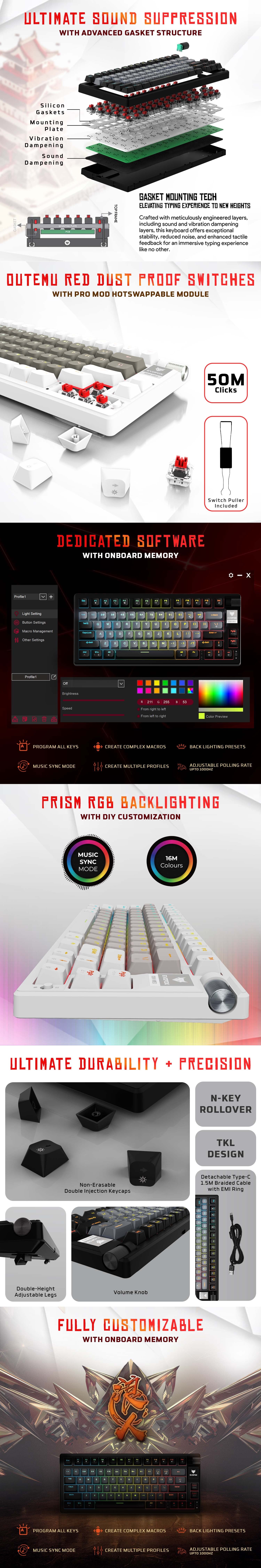 The keyboard uses Silent Outemu Red Dust Proof Switches.