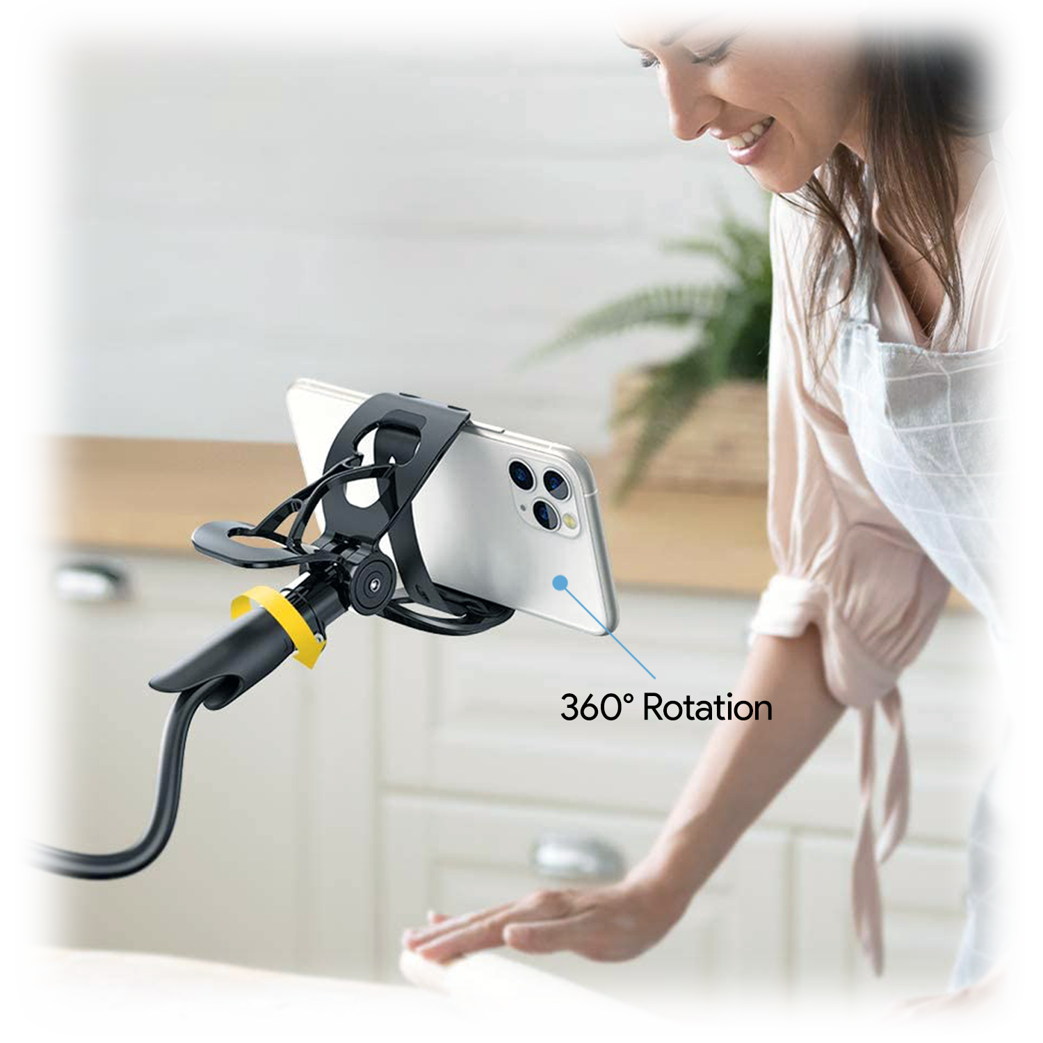 Get the perfect angle every time with the Flexi Phone Holder's 360-degree rotating clamp. Whether you're watching a movie or following a recipe, your phone will stay put at any angle.