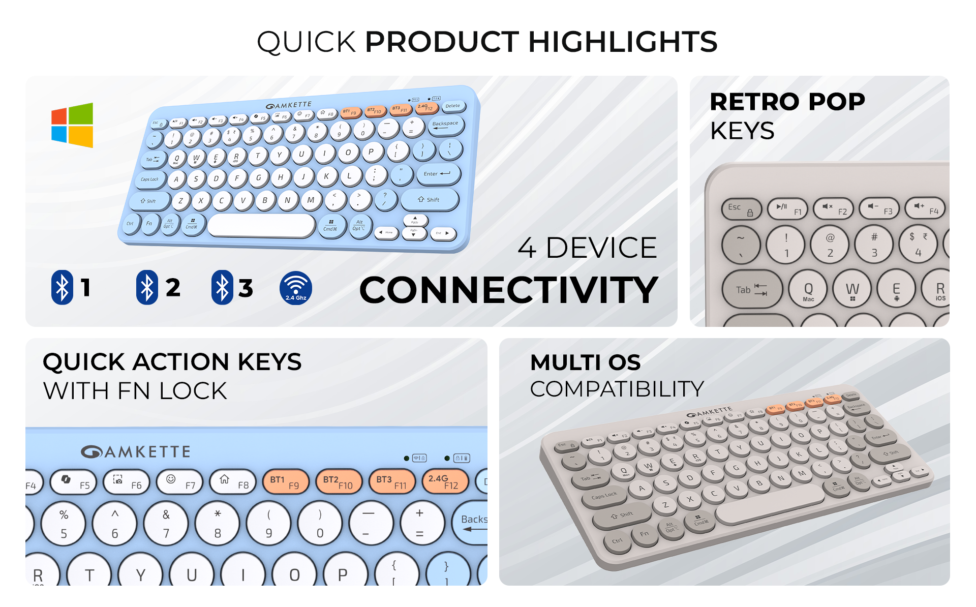 Amkette Optimus BT 4-in-1 Wireless Keyboard | Bluetooth + 2.4GHz | Multi-OS Support