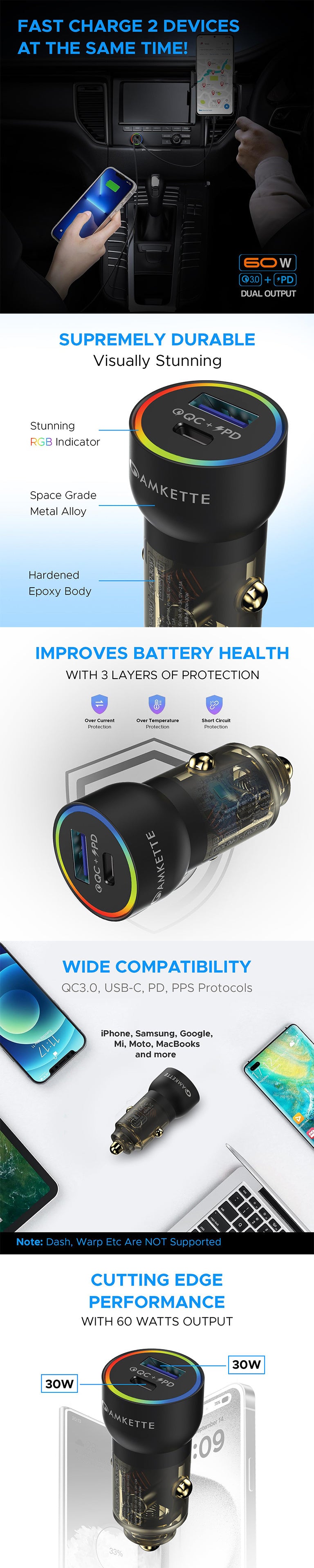 A. Safety is a top priority with the PowerPro 60W QC + PD Car Charger. It comes equipped with triple safety features, including protection against overcharging, overheating, and short circuits. You can charge your devices with confidence, knowing they're in safe hands.